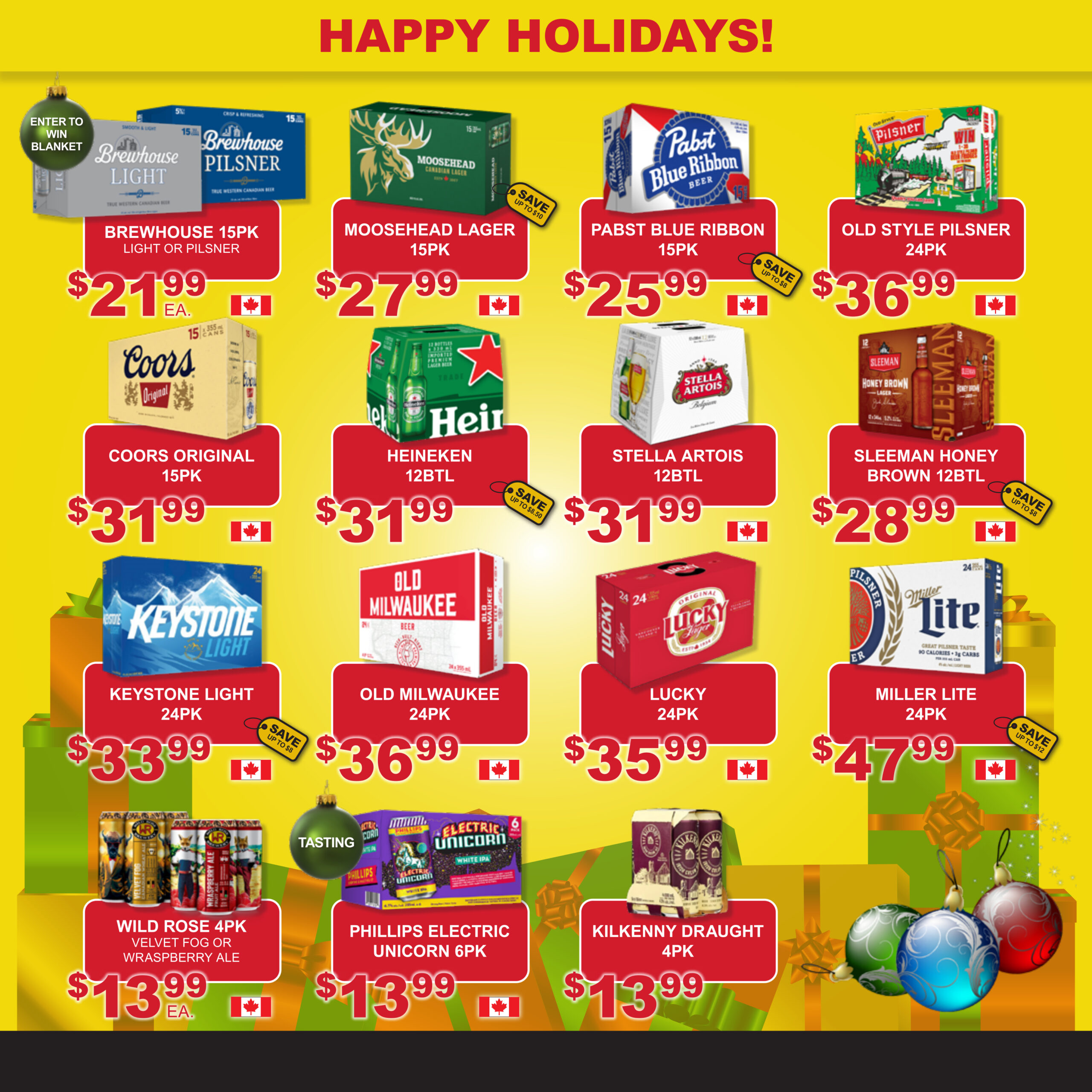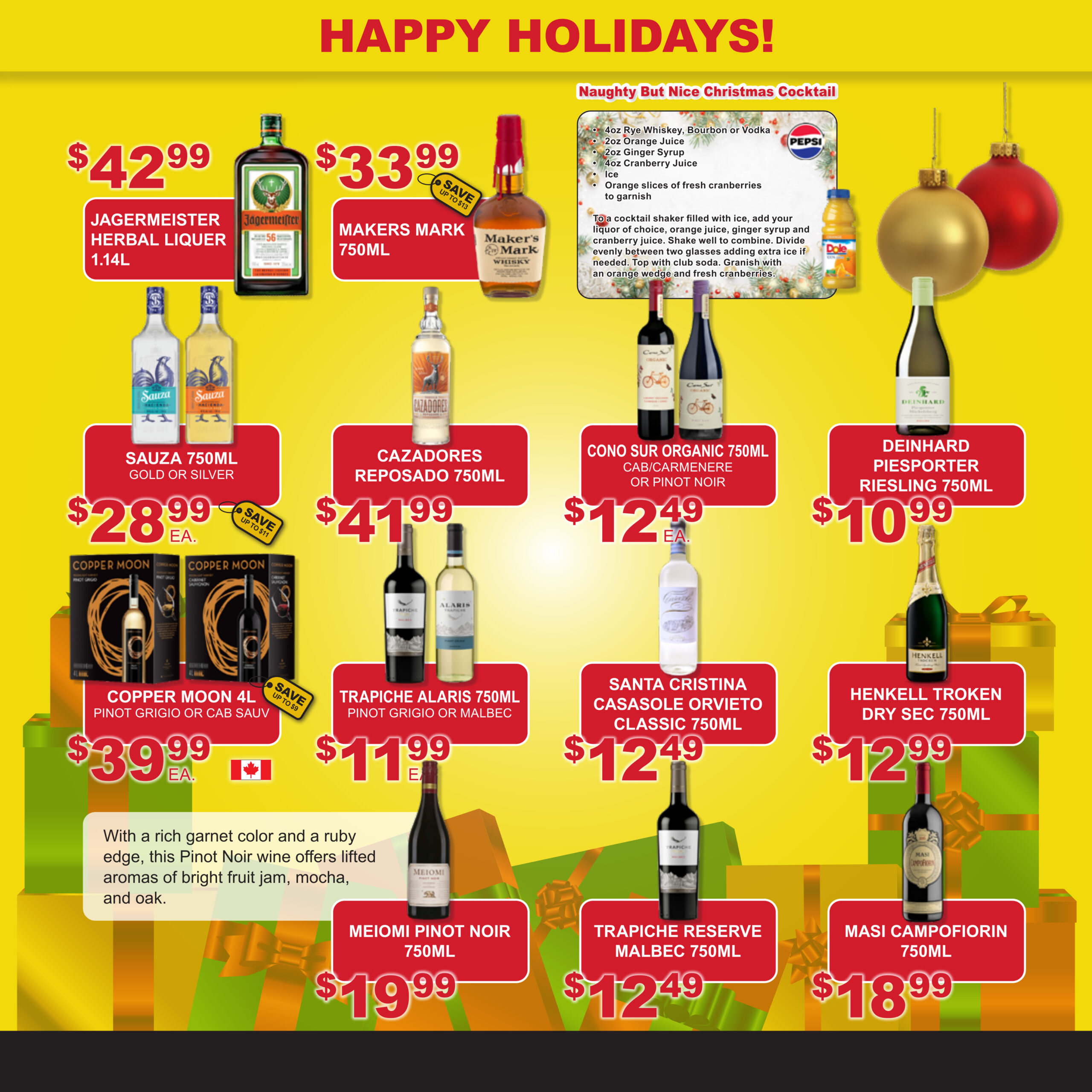 Come into your local store to check out our every day low prices on the drinks you would like to enjoy all year round – whether it be enjoying the sun in your backyard, or relaxing near a warm fire in winter..